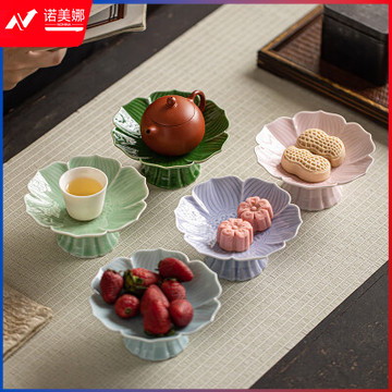 中式复古陶瓷高脚果盘 高脚款莲花小盘