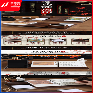 朗捷2026年周历木质马年台历单向历复古带笔筒日历台座桌面摆件商务办公桌历定制logo 千里江山图(深木色)