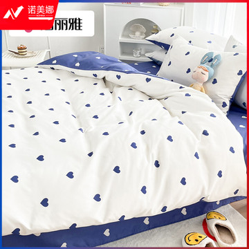 洁丽雅(Grace)水洗棉工艺 被套单件磨毛家用印花四季款床上用品被罩 深蓝-爱心 160*210cm