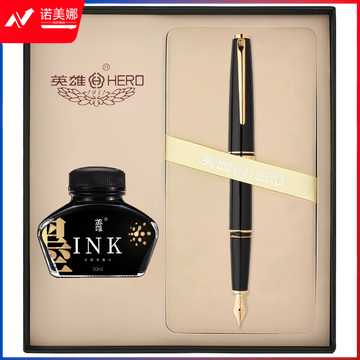 英雄(HERO)钢笔981黑色金夹商务办公铱金笔签字笔钢笔礼盒墨水套装