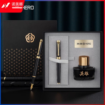 英雄(HERO)钢笔礼盒 【韶华系列】男女商务个性办公签字铱金书写笔送礼墨水套装 黑丽雅