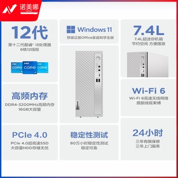 联想 台式机 整机(12代i5-12400 16G 1T+256G SSD 高教通用设备