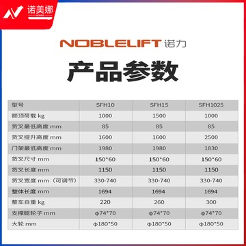 诺力(NOBLELIFT)手动液压堆高叉车1吨手动升降托盘装卸车液压堆垛车SFH1025载重1吨升高米