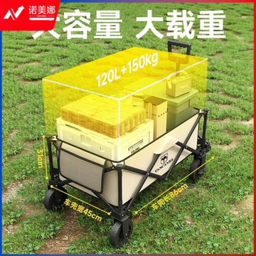恒品 户外露营车钓鱼小拖车露营装备野餐推车折叠便携营地手推车野营车 中号米色车+桌板 桌子配件 教具/装具及动植物