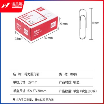 得力(deli)0018金属回形针 100枚/盒 10盒装 办公用品