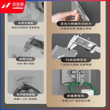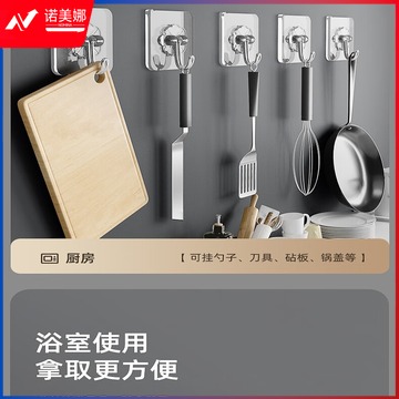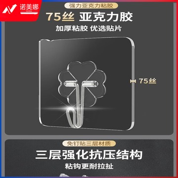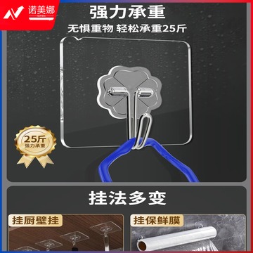 秉优 挂钩(75丝加厚)20个强力粘钩 无痕透明厨房浴室免打孔免钉贴衣钩