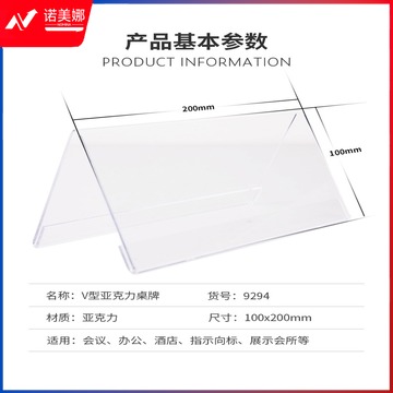 得力9294 V型亚克力桌牌(透明)(只)200*100mm
