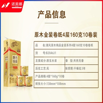 1100716184EA 清风 B20A6JN/B20A6J1/B20A6J2 清风原木金装4层160克10卷 160G 白色