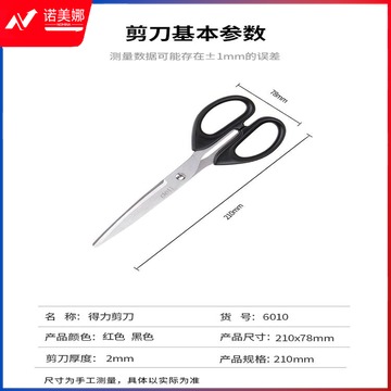 得力(deli)210mm大号办公生活剪刀 黑色6010