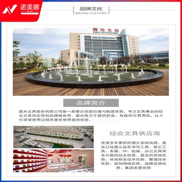 晨光(M&G)致力于整合创意价值与服务优势, 专注于综合文具产业。综合文具用品涵盖书写工具、学生文具、办公文具及其他相关产品四大领域。晨光工业园拥有全流程生产车间、模具工程、设备研发中心,通过整合包括原料、技术、资本、市场、人才和创意资源,为客户提供性价比的文具用品,让学习和工作更快乐。一切创意,发自内心,源于智慧。