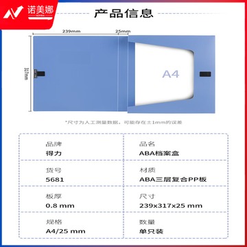 得力 (deli) 5681-25mm ABA系列粘扣式档案盒A4 蓝色