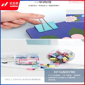 得力(deli)96只25mm彩色长尾夹票夹 4#金属燕尾夹票据夹子 办公用品 33425