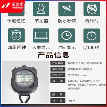 京梦强 助城 秒表计时器田径跑表电子秒表多功能两排数字显示十道记忆跑步运动训练计时器体育用品 两排显示10道记忆