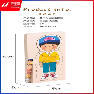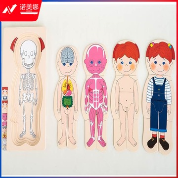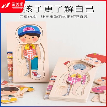 幼儿童木质多层拼板教玩具 人体器官认知早教男孩女孩身体结构拼图