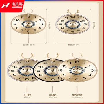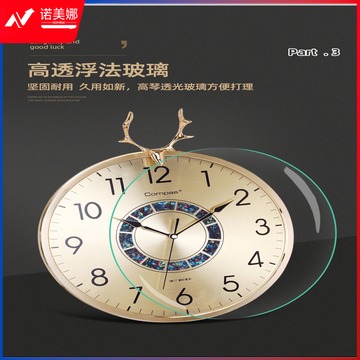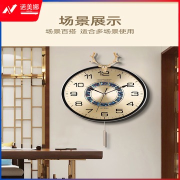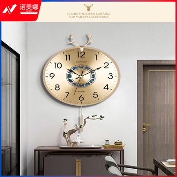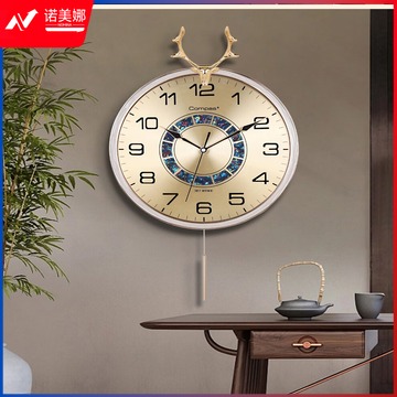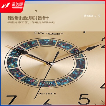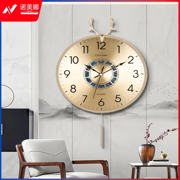 康巴丝(Compas)轻奢时尚挂钟客厅家用现代简约大气摆钟装饰时钟挂墙中式挂表 3351白金(AI智能机芯)静音钟优品