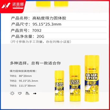 得力7092中号胶棒20g固体胶棒强力胶棒 安全固体胶 无甲醛12支/盒